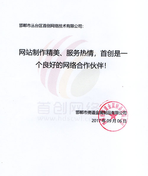 邯鄲市倚道金屬公司對我公司評價